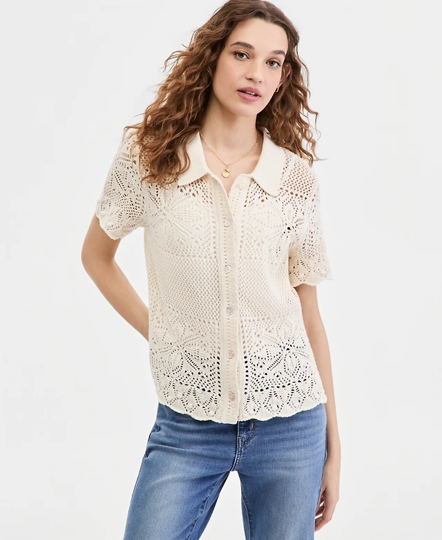 Democracy Women's Crochet Trim Button-Front Ruffle Shirt
