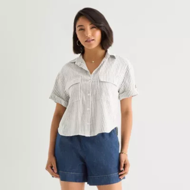 Liz Claiborne Womens Crew Neck Short Sleeve Blouse