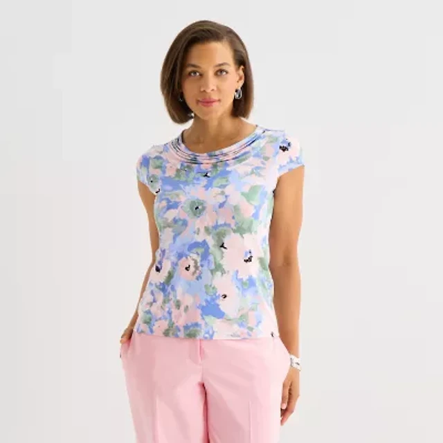 Alfred Dunner Petite The Royal Treatment Tie Dye Biadere Knotted Crew Neck Top