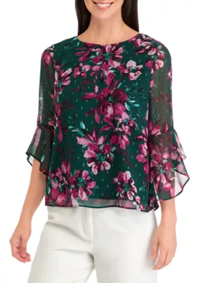 Alfred Dunner Petite Leaf Floral Top
