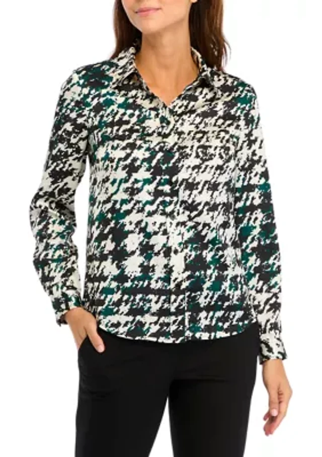 Petite 3/4 Roll Tab Sleeve Printed Collared Blouse