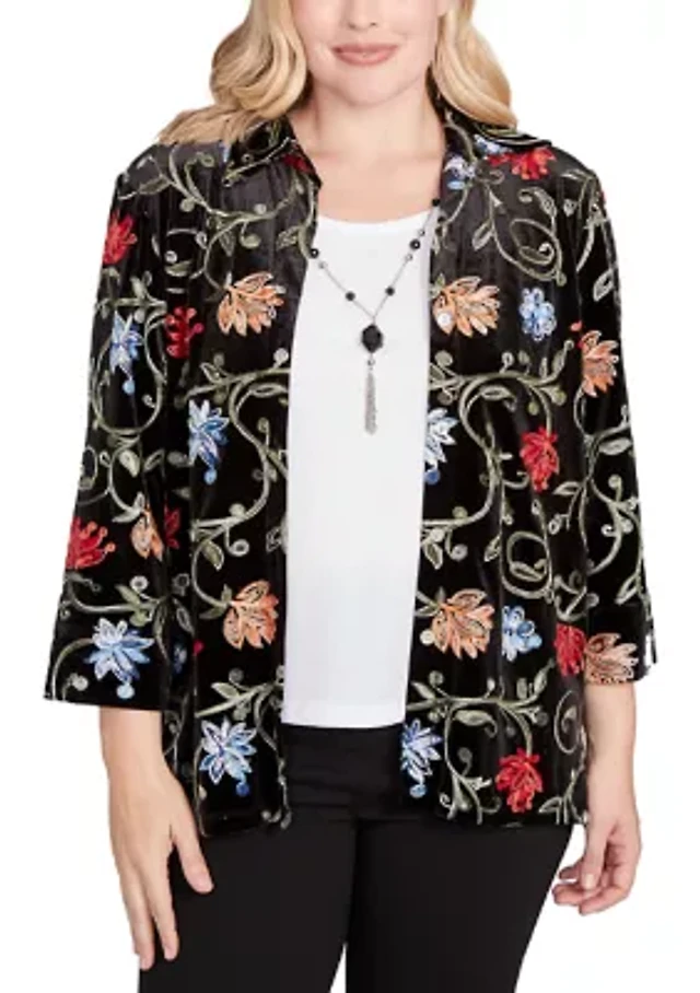 Ann Taylor Floral Embroidered Collar Blouse Palm Green Women's