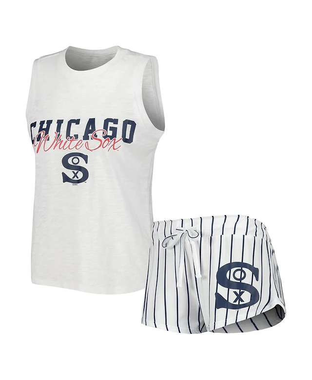 Concepts Sport Women's White Boston Red Sox Reel Pinstripe Tank Top Shorts Sleep Set