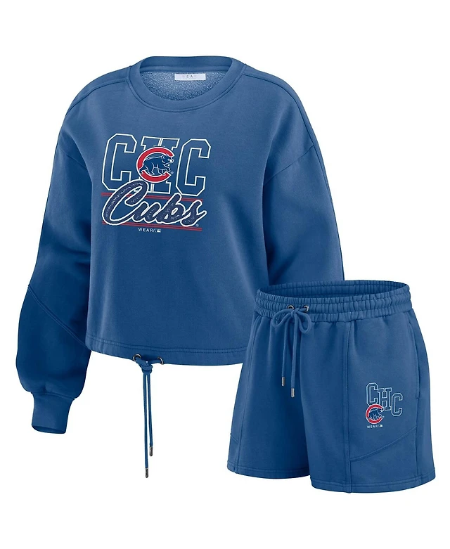 Wear by Erin Andrews Women's Navy Atlanta Braves Washed Fleece Sweatshirt Shorts Lounge Set