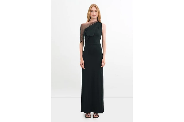 Mac Duggal Women's Crepe Sleeveless V Neck Column Dress With Bow