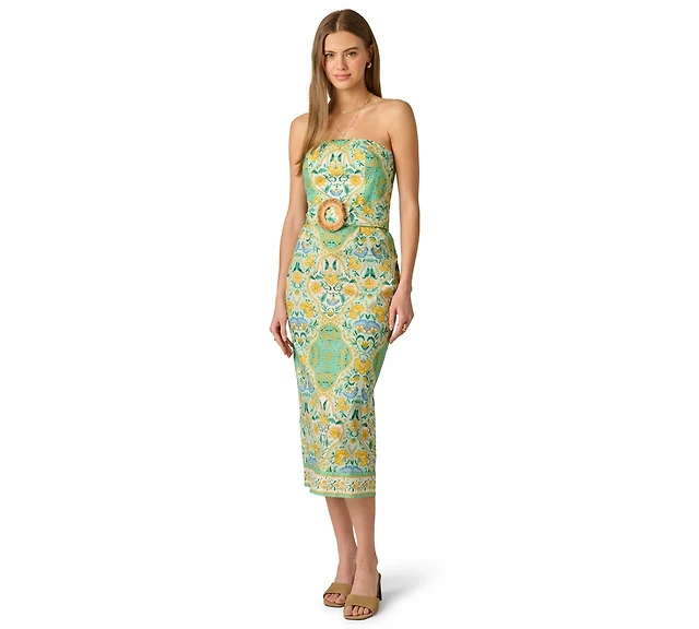 Women's Tie Strap Printed Midi Dress