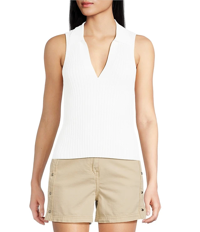 a.n.a Pointelle Womens Sleeveless Polo Shirt