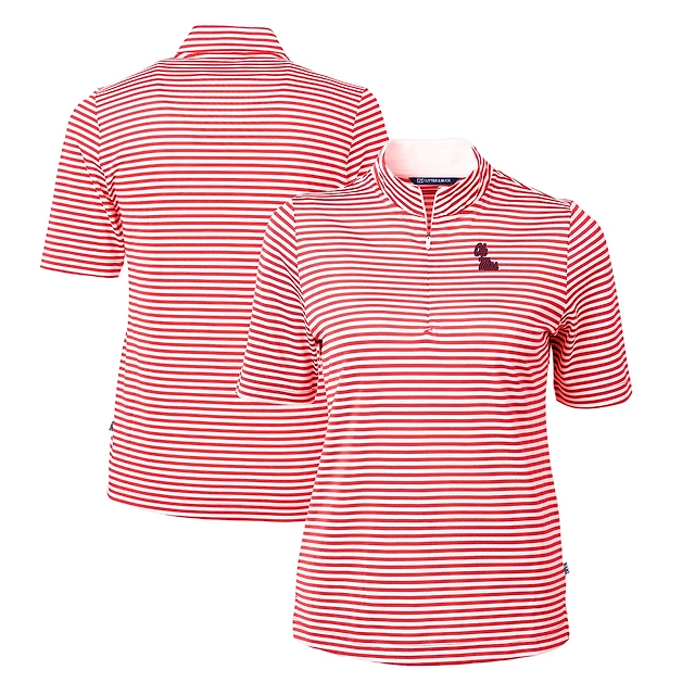 Women's Cutter & Buck Scarlet San Francisco 49ers DryTec Virtue Eco Pique Stripe Recycled Polo