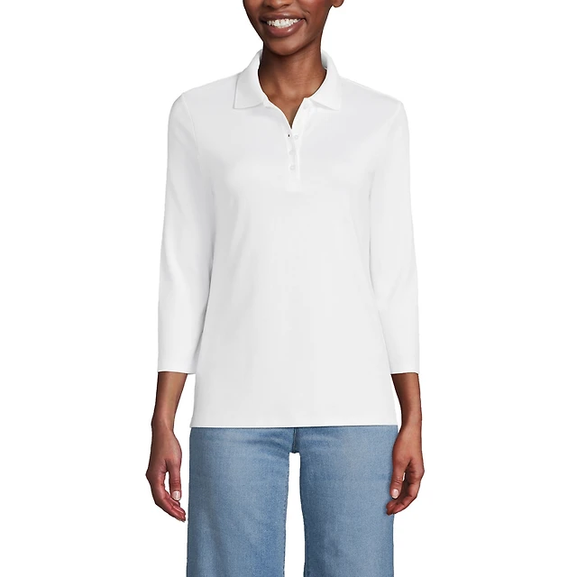 Lands' End Women's Petite 3/4 Sleeve Supima Cotton Polo Shirt