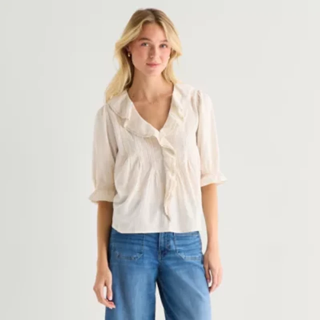 Liz Claiborne Womens Round Neck Short Sleeve Blouse