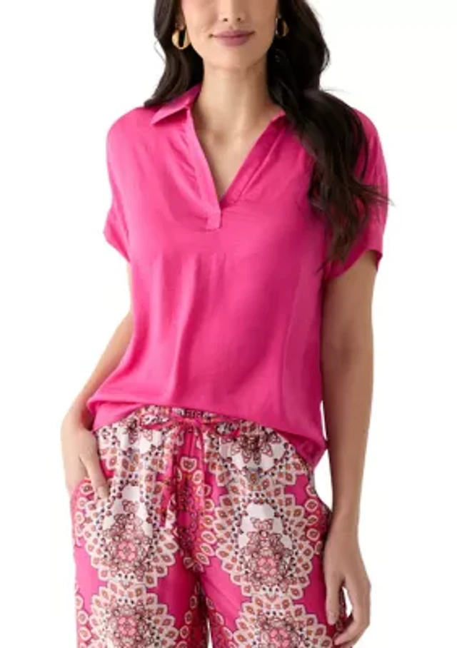 Avenue Women's Flutter Sleeve Keyhole Blouse