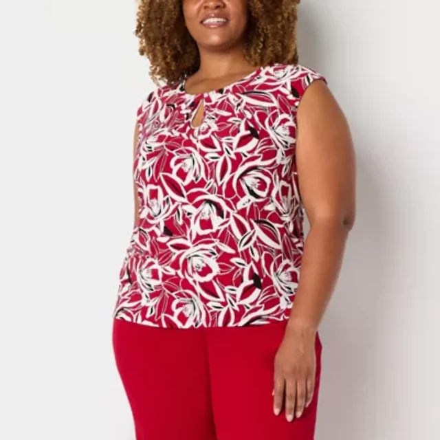 Plus Sleeveless Split Neck Blouse with Ruffles