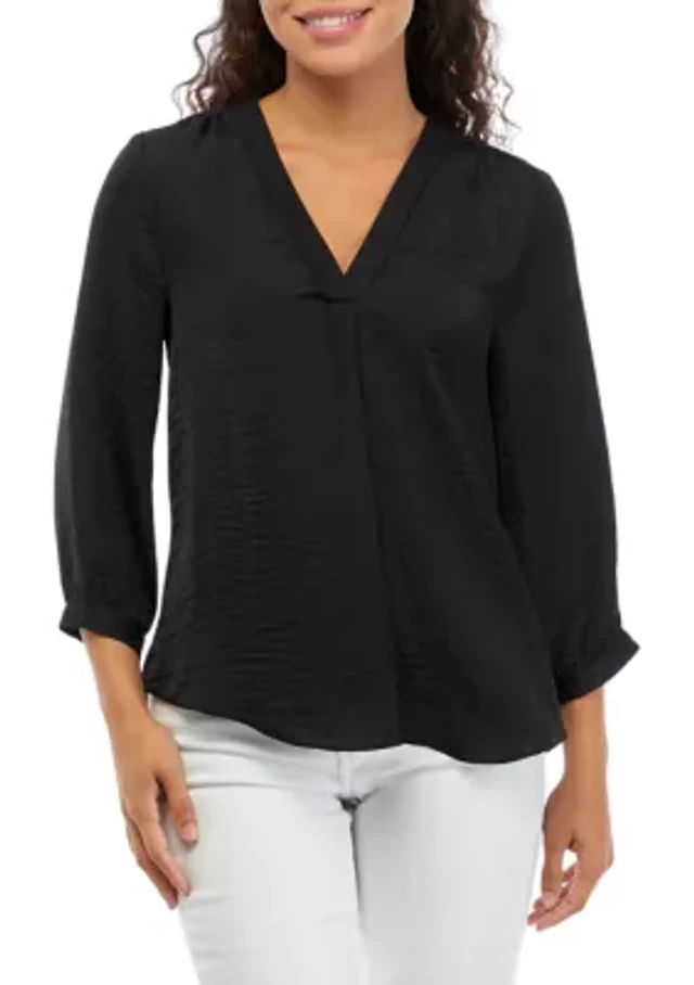Plus 3/4 Sleeve V-Neck Blouse