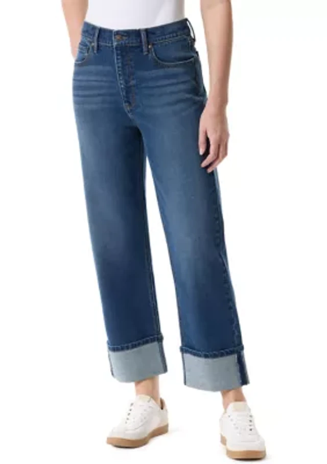 June + Vie Women's Wide-Leg Cropped Cuffed Jeans