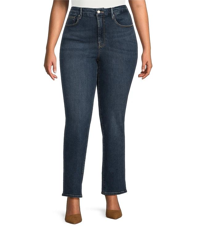 Eileen Fisher Plus Size Organic Cotton Blend Stretch Denim Straight Ankle Jeans
