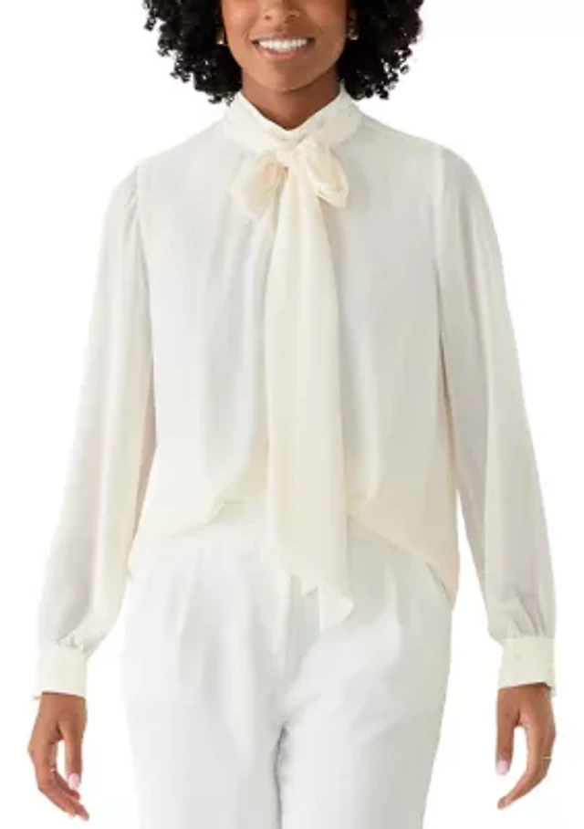 CeCe Women's Tie-Neck Long-Sleeve Blouse