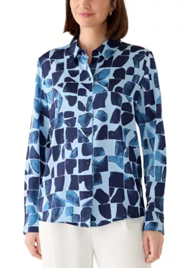 Kasper Women's Printed Ruffle-Sleeve Blouse