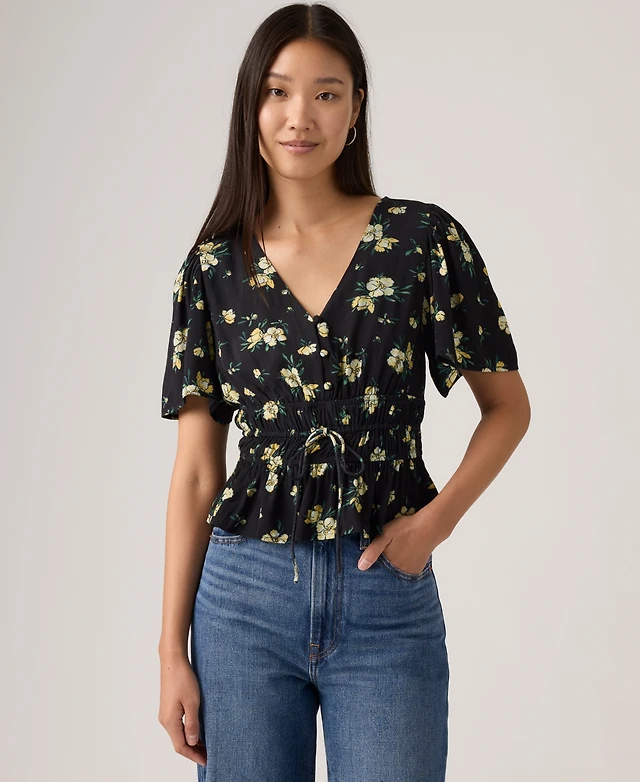 Women's Multi Floral Print Ruffle Sleeve Blouse