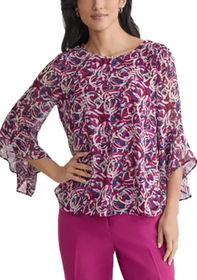 Women's Circle Printed Ruffle Bell Sleeve Blouse