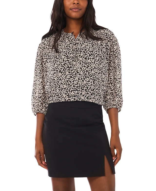 Vince Camuto Women's V-Neck Front Placket Short-Sleeve Blouse