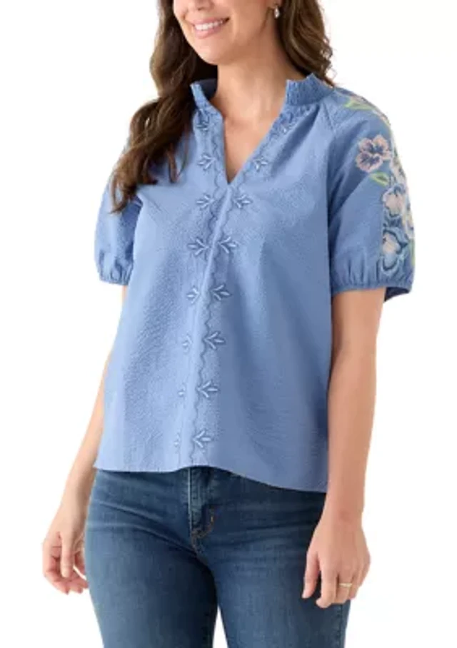 Ann Taylor Crew Neck Shirred Blouse Women's