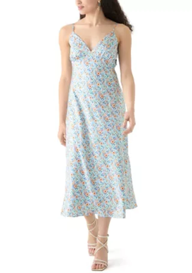 Ann Taylor Lace Trim Satin Midi Dress Pacific Shore Women's