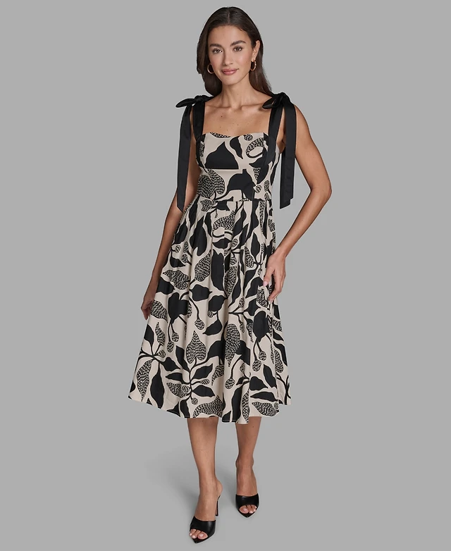 Donna Karan New York Women's Satin V-Neck Belted A-Line Midi Dress