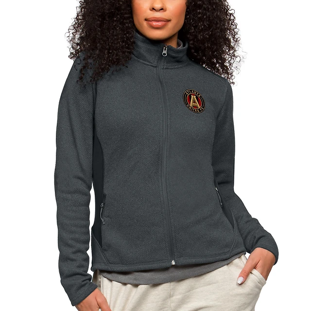 Women's Antigua Heather Charcoal Orlando City SC Team Logo Course Full-Zip Jacket