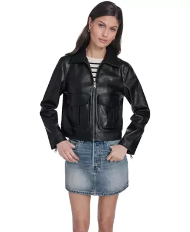 Furniq Uk Women's Shearling Belted Biker Jacket, Silky Black with White Wool