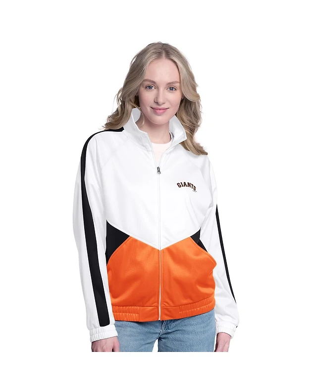 G-iii Sports by Carl Banks Women's White/Black San Francisco Giants Rally Rhinestone Raglan Full-Zip Track Jacket