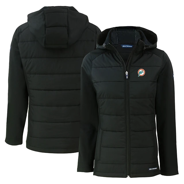 Women's Cutter & Buck Black Florida Marlins Cooperstown Collection Rainier Primaloft Eco Full-Zip Hybrid Jacket