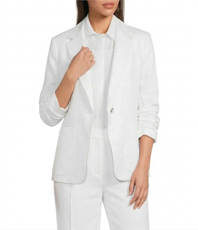 Intro Petite Size Stretch Slub Weave Notch Collar Long Sleeve Easy Fit Button-Front Jacket