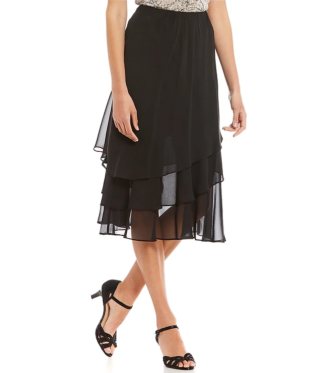 Kasper Women's Round Neck Knee Length Ruffle Skirt Dress, Regular and Plus