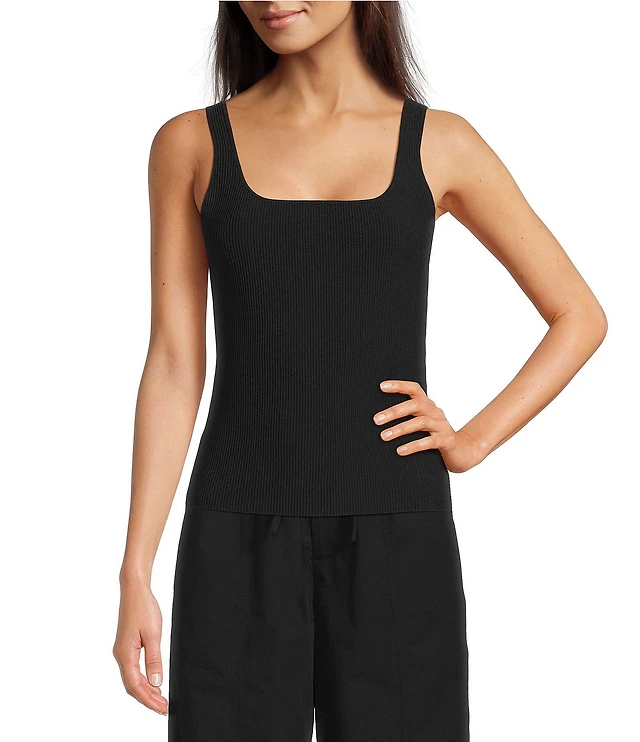 Le' AL.X Knit Ribbed Sqaure Neck Tank Top