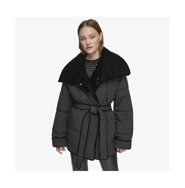 Donna Karan New York Women's Faux-Fur-Collar Short Puffer Coat