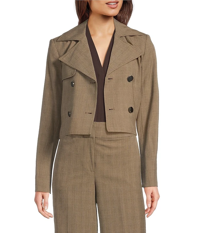 KARL LAGERFELD PARIS Tweed Print Notch Collar 3/4 Scrunch Sleeve Coordinating Jacket