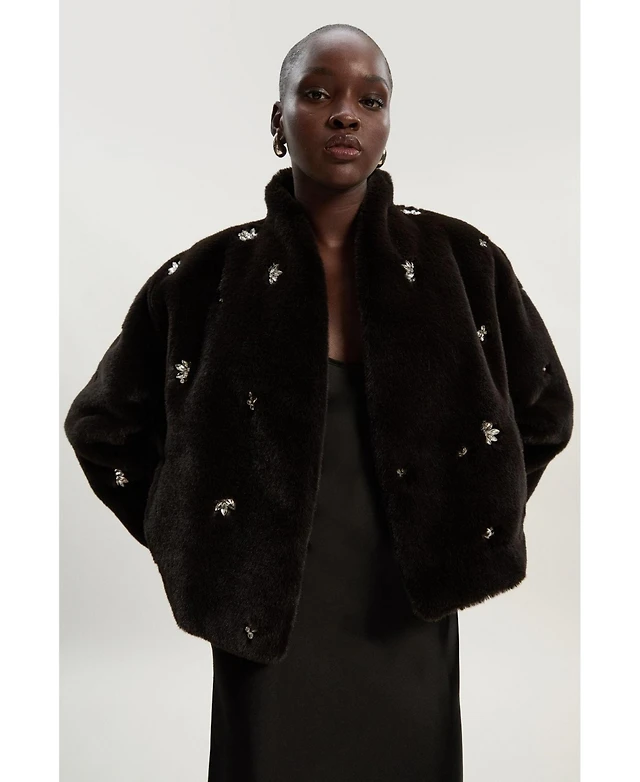 RM Rebecca Minkoff Womens Faux Fur Coat
