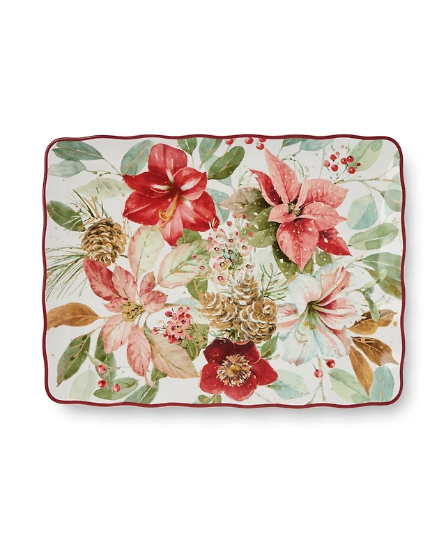 Fitz and Floyd Poinsettia Holiday Collection Merry Christmas Serving Platter
