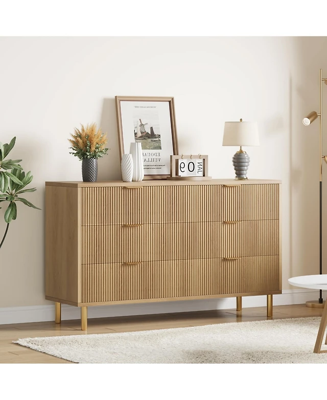 Slickblue Farmhouse Contemporary 6-Drawer Double Dresser for Bedroom Storage and Rustic Style