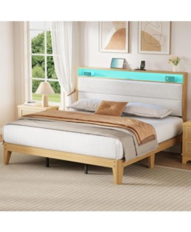 gaomon Led Bed Frame 2-Tier Storage Headboard Upholstered Platform Charging Station Drawer Heavy-Duty Wood Slats No Box Spring