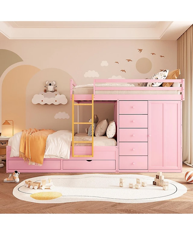 Streamdale Furniture L-Shaped Twin Bed Frame w/ Trundle, Drawer
