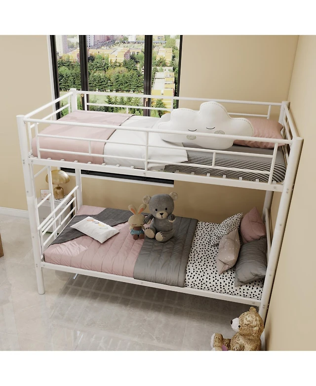 Streamdale Furniture Twin Over Twin Metal Bunk Bed With Slide, Kids House Bed
