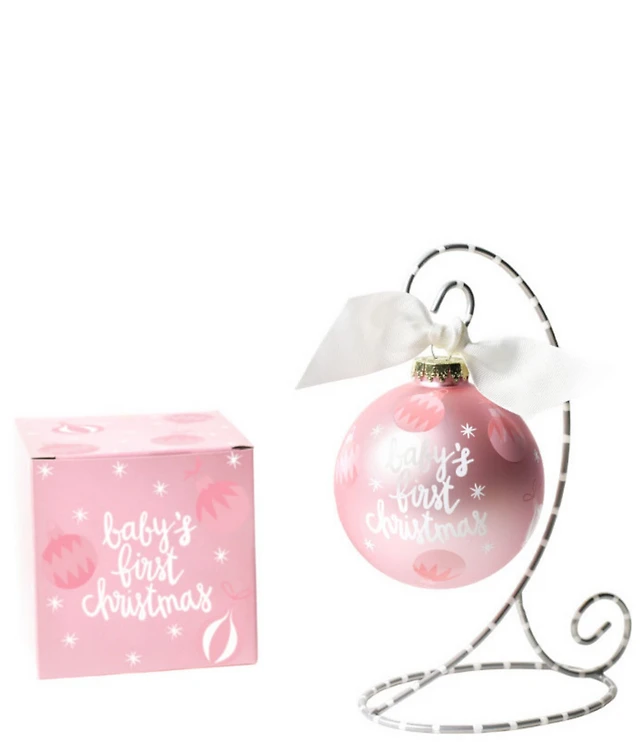Coton Colors Babys First Pink Glass Ornament with Swirl Stand Set