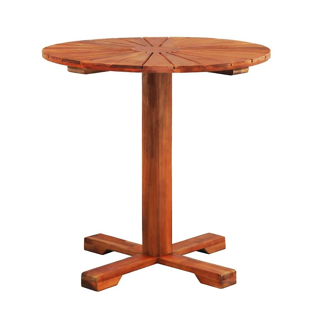 Gouun 39 in Acacia Wood Round Outdoor Bar Table with Slatted Top