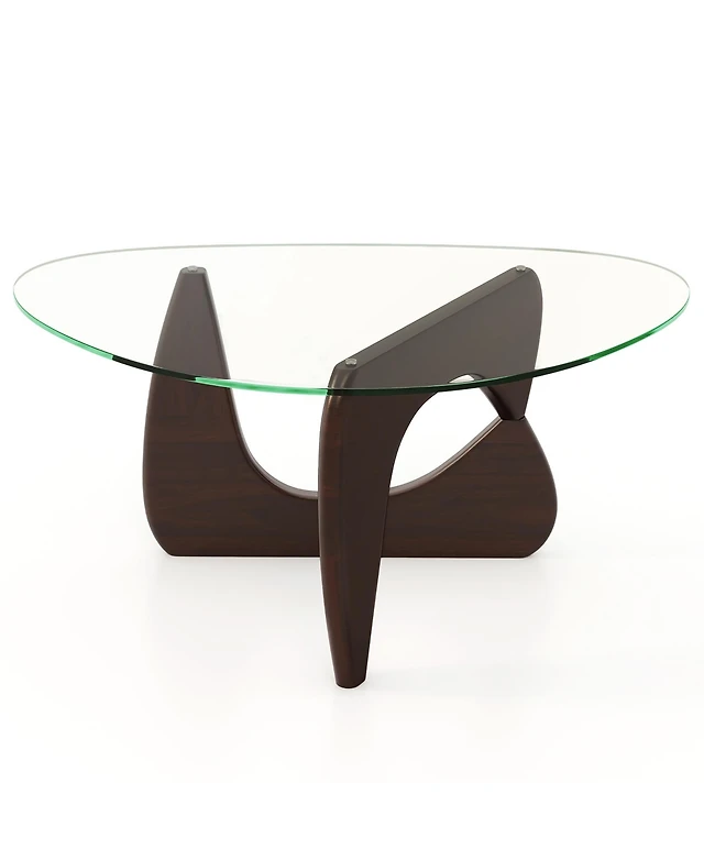 Streamdale Modern Oval Glass Coffee Table with Oak Wood Legs