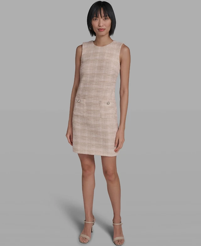 Mac Duggal Women's Boucle Sleeveless Collared Button Up Midi Dress