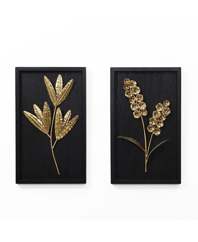LuxenHome 2-Piece Flower Bouquet Modern Wall Decor Set Black and Gold Abstract Wall Art Hanging Decoration
