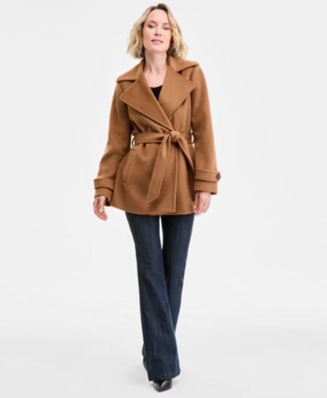 Sebby Collection Women's Long Belted Oversized Double Breasted Faux Wool Coat