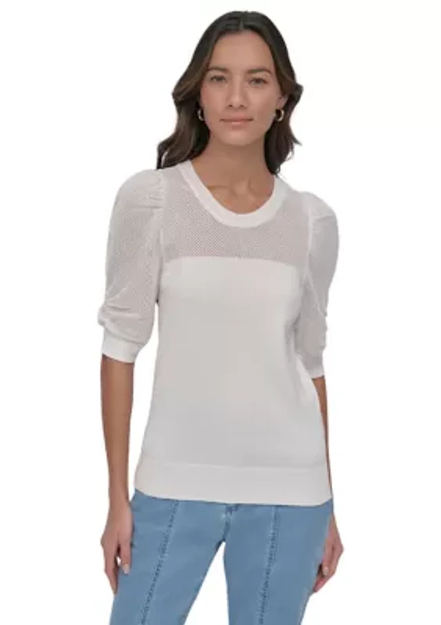 Leem Women's Mesh Sleeve Knitted Sweater
