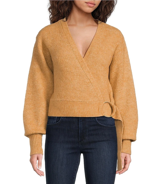 Karen Kane Knit Long Sleeve Faux Wrap Top